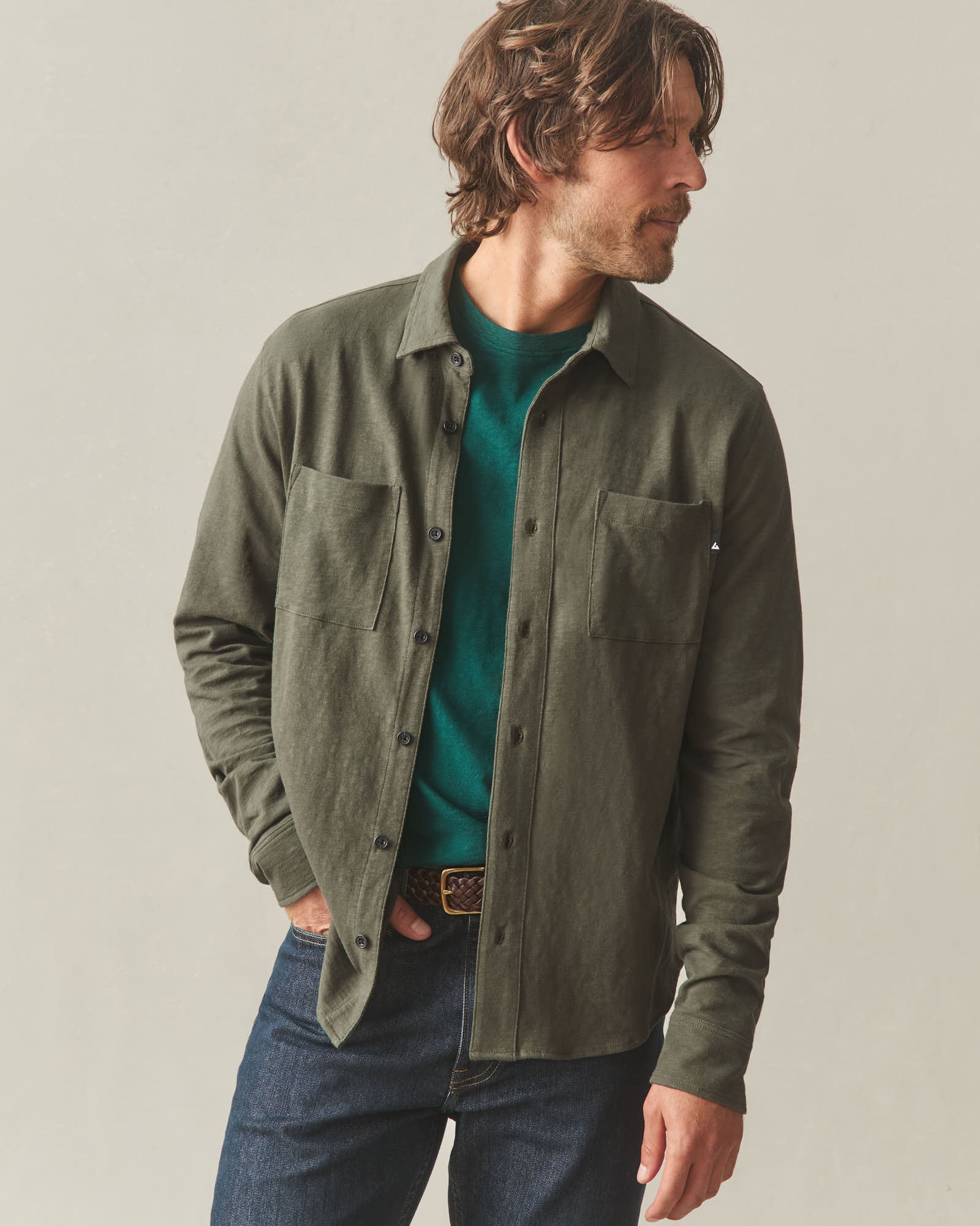 Men's Premium Slub Button Up Long Sleeve - Loden