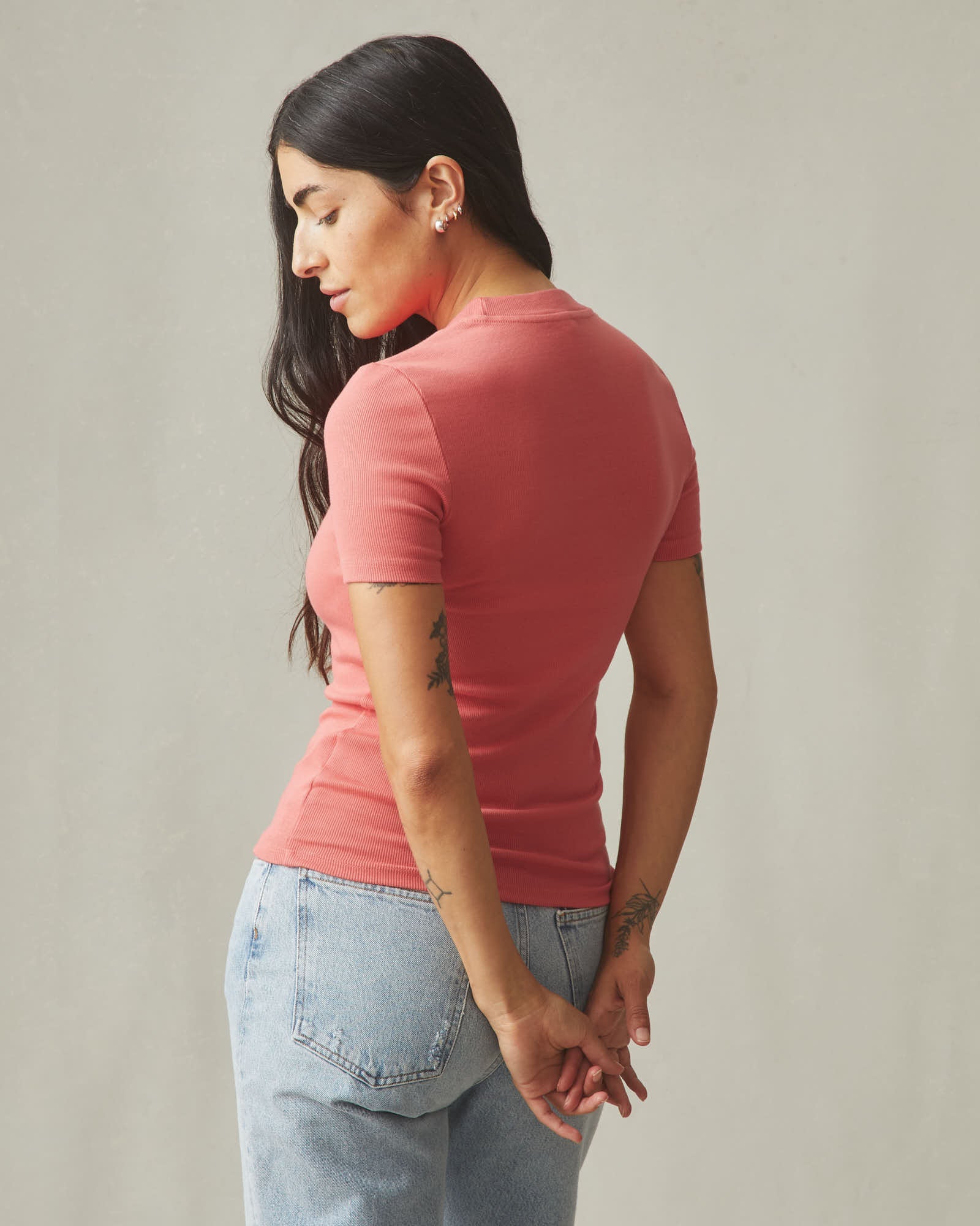 Women's Luxe Rib Crew Tee - Spiced Coral